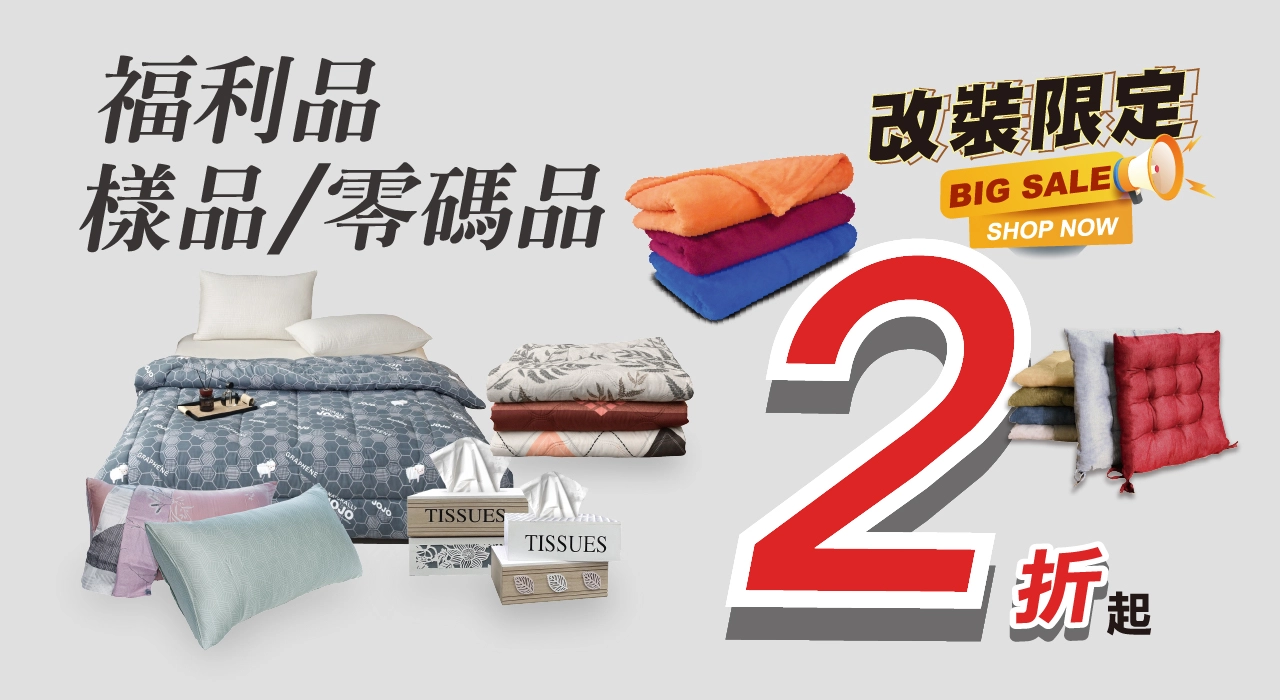 現場設有福利品專區,提供 兩折起 的優惠。福利品皆經門市人員確認功能正常,僅可能有些微外觀痕跡,就能用超低價格帶回高品質寢具,是省預算又想升級居家環境的最佳選擇。