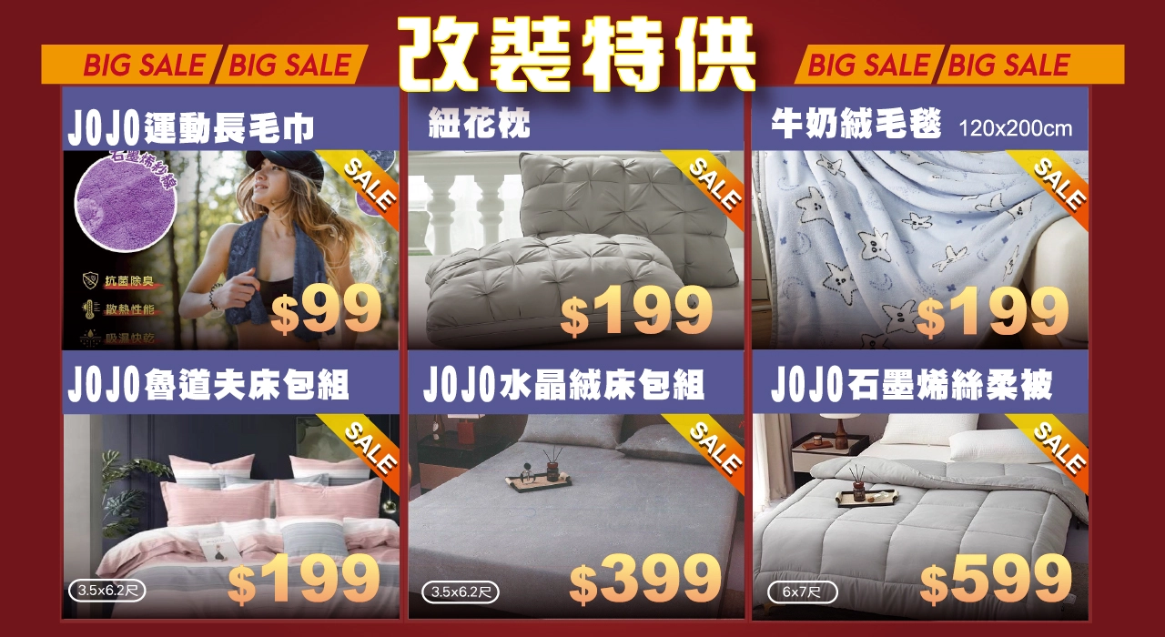 為回饋長期支持的顧客,許多實用寢具生活小物皆從 99 元起,包含: