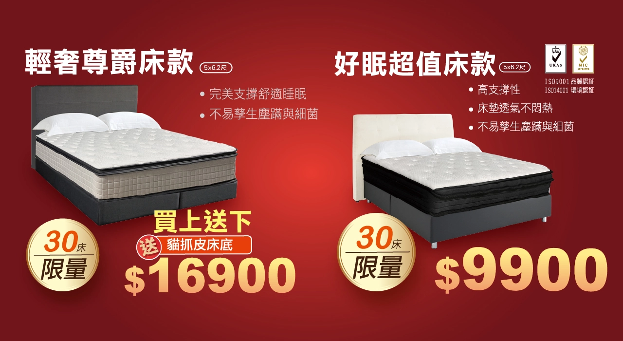 床墊限量搶購|滿額送現金券